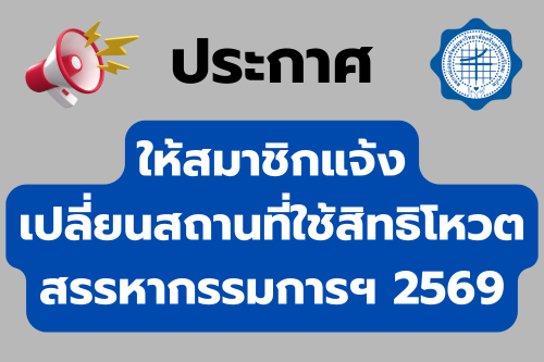 ประกาศ ให้สมาชิกแจ้งเปลี่ยนที่ใช้สิทธิลงคะแนนสรรหากรรมการดำเนินการประจำปี 2569