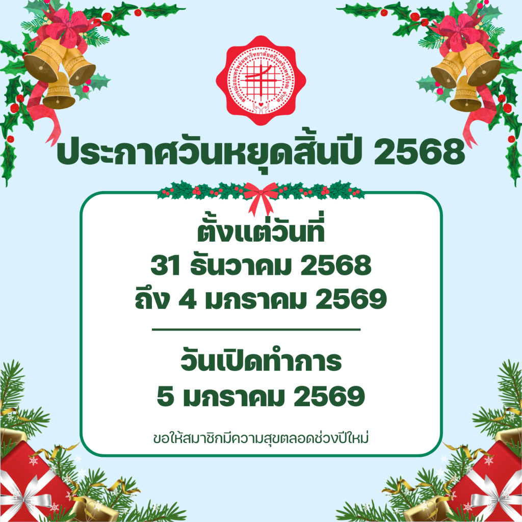ประกาศวันหยุดสิ้นปี 2568 ของสหกรณ์ออมทรัพย์ มศว จำกัด