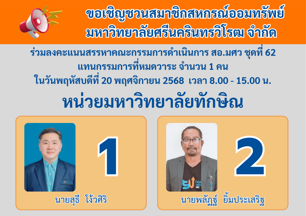 31/10/2025 By Poonmee Jitjaithiang ประชาสัมพันธ์ รายชื่อและหมายเลขของผู้เข้ารับการสรรหากรรมการดำเนินการ ชุดที่ 62 Share: Share List