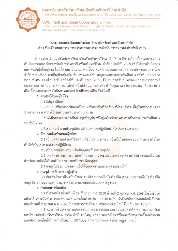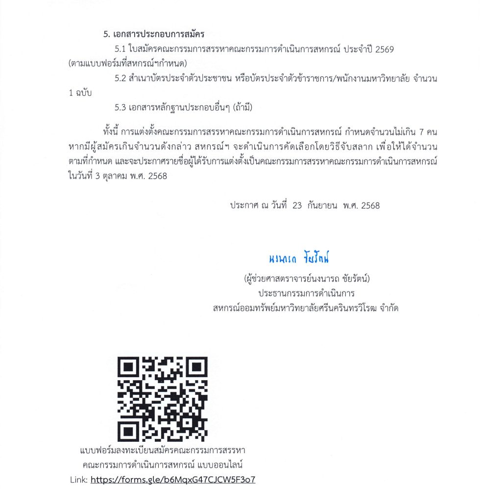 23/09/2025 By Poonmee Jitjaithiang ประกาศ รับสมัครคณะกรรมการสรรหาคณะกรรมการดำเนินการ 2569 ดาวน์โหลดแบบฟอร์มใบสมัครได้ที่นี่ Share: Share List