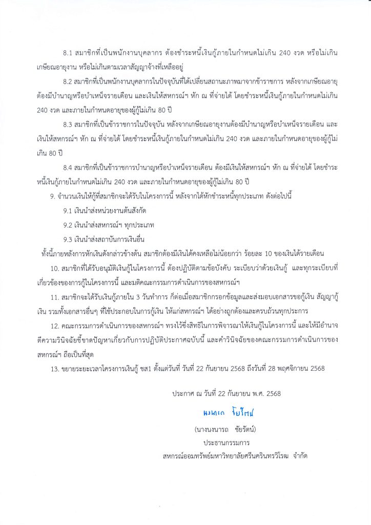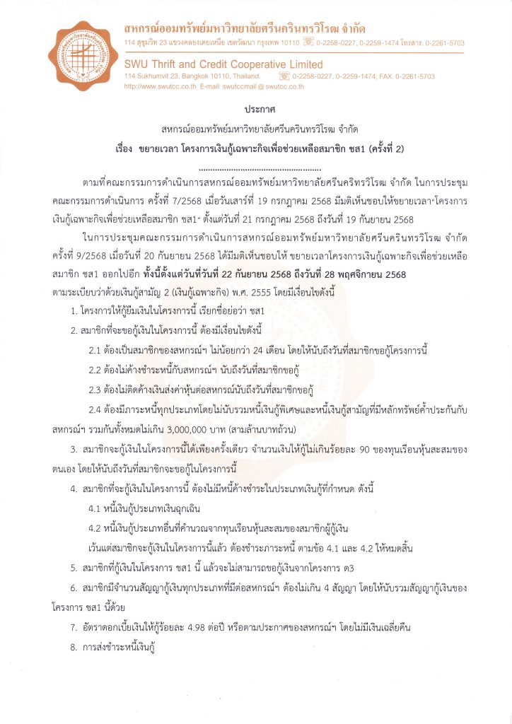 23/09/2025 By Poonmee Jitjaithiang ประกาศ ขยายเวลา โครงการเงินกู้เฉพาะกิจเพื่อช่วยเหลือสมาชิก ชส1 (ครั้งที่ 2) Share: Share List