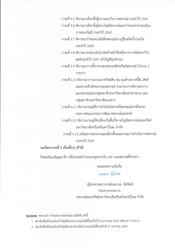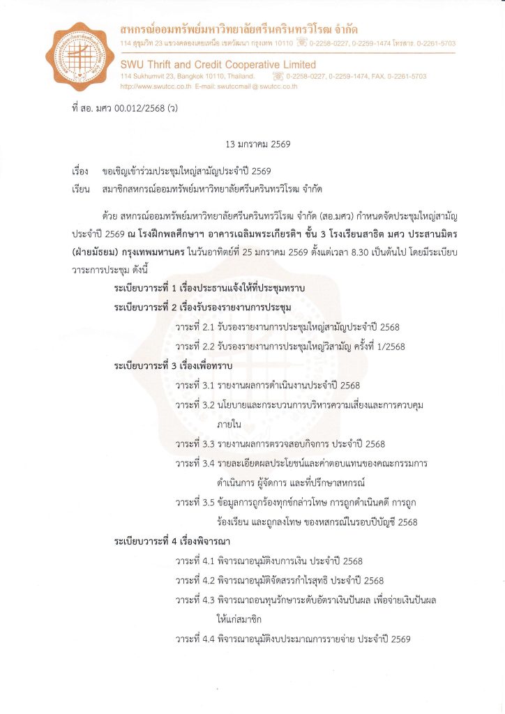 13/01/2026 By Poonmee Jitjaithiang ขอเชิญสมาชิกเข้าร่วมประชุมใหญ่สามัญ ประจำปี 2569 Share: Share List